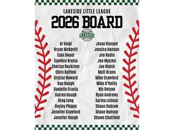 Please join me in welcoming the 2026 Lakeside Little League Board of Directors: