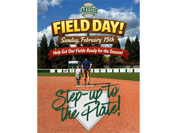 The 2026 season is almost here, and we need our Lakeside families to help get our fields ready for Opening Day! Join us for our annual Field Day on Sunday, February 15th from 8:30am–2:00pm at Feist & Granite Bay Park.